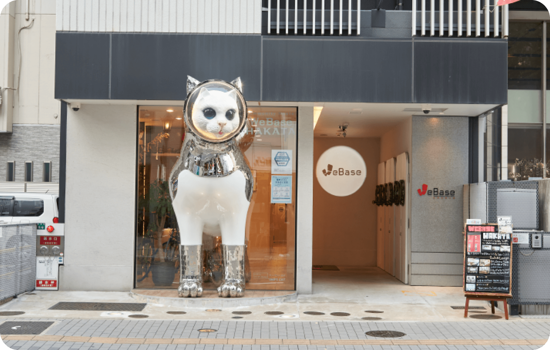 エリア散策の際は、WeBase 博多にも遊びに来てください!多国籍でユニークなスタッフがお待ちしています。
