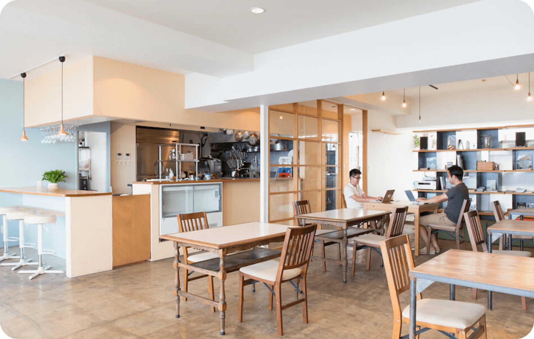 都市部から少し離れた自然に近い環境で、集中とリラックスを両立させた働き方ができること、また入居者の約7割が関東など県外からの移住者で、ワークだけでなくライフを重視する人々が多くいるのが特徴です。 IT、映像、建築、教育、まちづくりなど様々な業種のクリエーターと、日々プロジェクトが行われています。